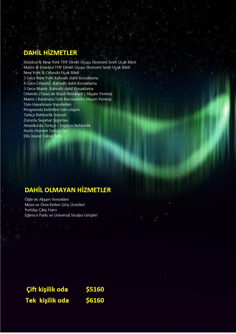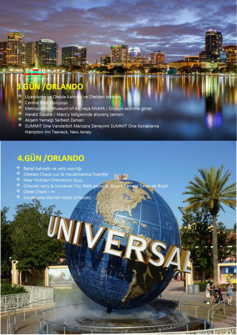 Tatilce Tur ayrıcalığıyla hazırlanan Amerika Turu, Amerika Birleşik Devletleri’nin en popüler şehirlerini tek programda keşfetme imkânı sunuyor. Dünyanın en ikonik metropollerinden New York, eğlence ve tema parklarıyla öne çıkan Orlando ve sahilleriyle ünlü Miami’de; konforlu konaklama, planlı ulaşım ve Türkçe rehberlik hizmetleriyle unutulmaz bir seyahat deneyimi sizi bekliyor.